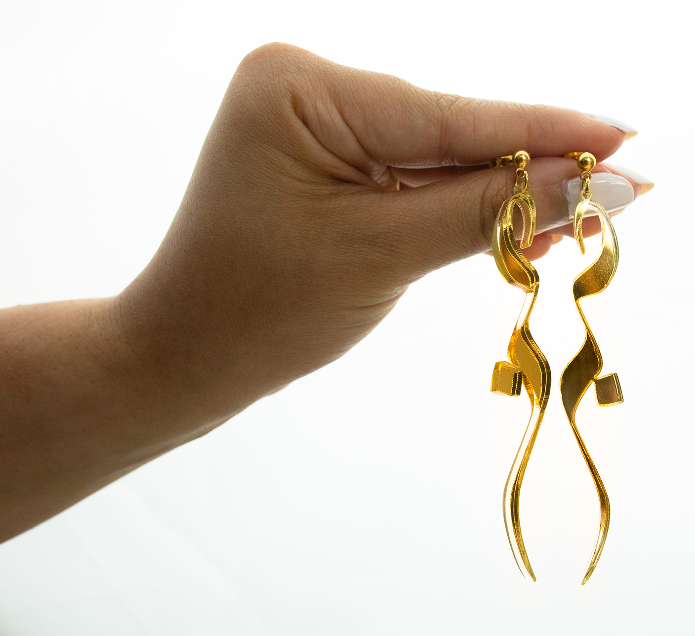 Earrings made with upcycled acrylic and stainless steel posts. Come in gold and white. Sabr means patience in Farsi, Arabic, and Urdu. This piece is inspired by a passage from The Seven Valleys, which describes the mystical path through the Valley of Search: "The steed of this Valley is patience; without patience the wayfarer on this journey will reach nowhere and attain no goal. Nor should he ever be downhearted; if he strive for a hundred thousand years and yet fail to behold the beauty of the Friend, he should not falter." This piece serves as a physical adornment of the patience required on our journey toward deeper meaning and higher fulfillment. Made to order. Expect 2-4 weeks shipping time.